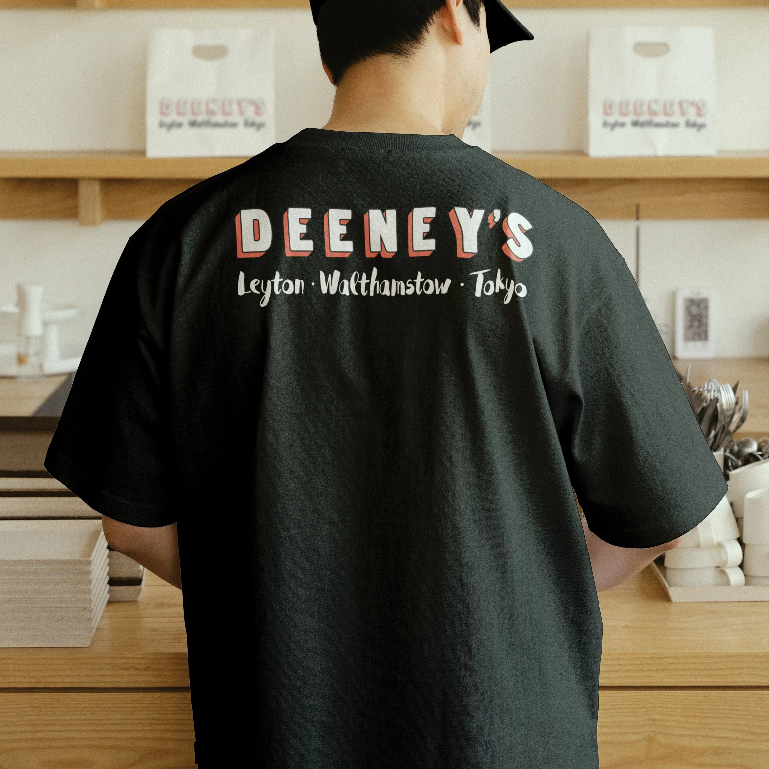 Unisex and children’s apparel for Deeney’s café, including white and black t-shirts, children’s lilac t-shirt, 5 panel cap and tote bag. This was complimented by a neck label system and swing tags, with custom tartan as a nod to the owner’s Scottish heritage.
